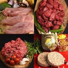 Mr. Mhor entered the Robbing Butcher’s shop and was disappointed to note that there was an obvious dearth of eggs on the shelves. He obtained the circular square sausage, Stornoway black pudding, fruit pudding and two steaks (which were not for breakfast, but which the Mustress required for dinner that evening) and, after paying, made to exit the shop.